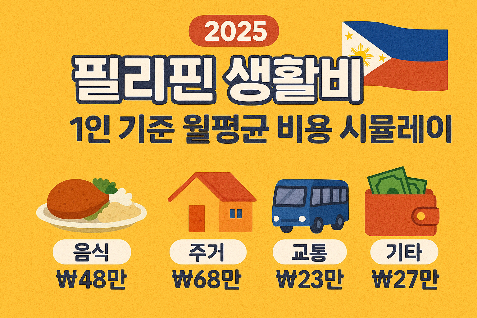 필리핀 생활비 2025 — 1인 기준 월평균 비용 시뮬레이션 & 지역별 물가 비교