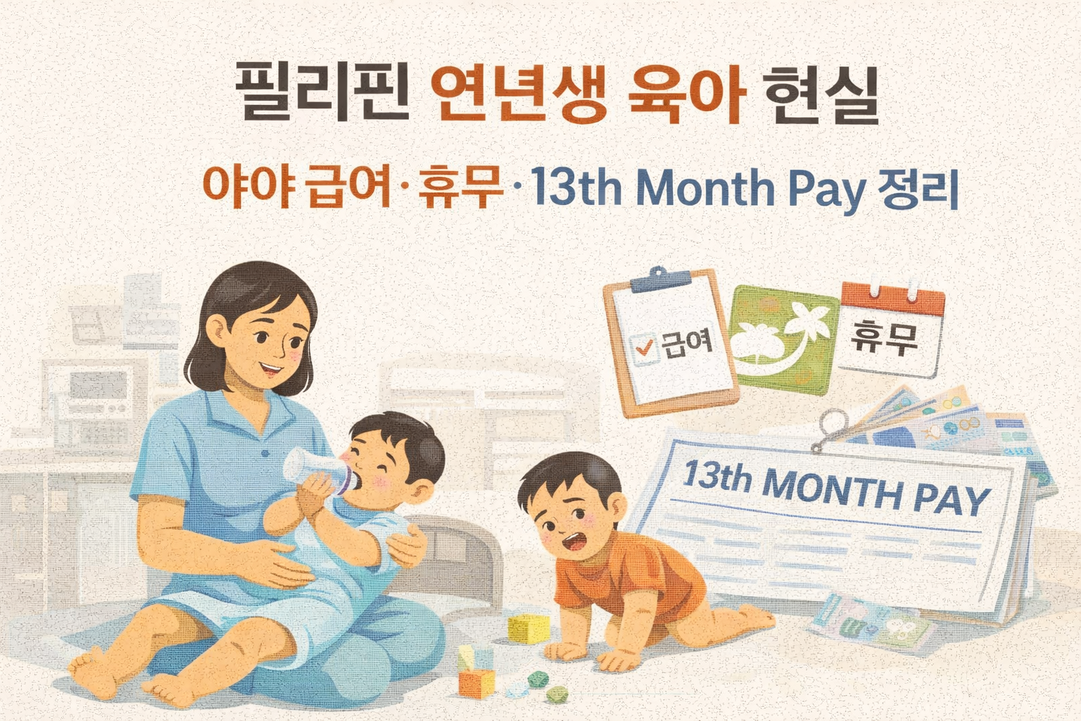 필리핀 연년생 육아 현실|야야 급여·휴무·13th Month Pay 정리