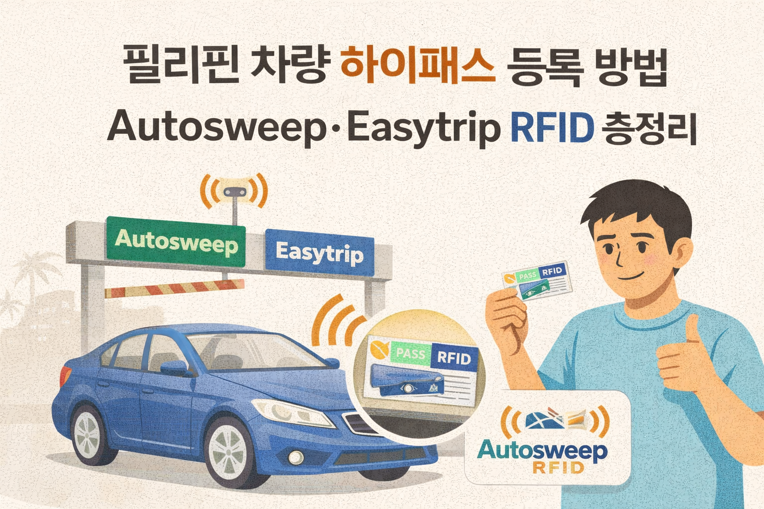 필리핀에서 운전을 시작했다면 가장 먼저 해결해야 할 숙제가 바로 RFID(하이패스) 설치입니다. 톨게이트에서 현금을 내려고 길게 줄 서 있는 차들을 보면 왜 RFID가 필수인지 금방 깨닫게 되죠. 필리핀은 도로마다 운영사가 달라 AutosweepEasytrip 두 종류를 모두 부착해야 합니다. 2025년 기준 최신 등록 방법을 정리해 드립니다.