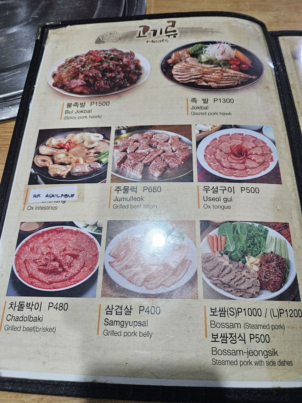 💡 1페소 ≈ 25원 기준, 고기류는 15,000원 내외로