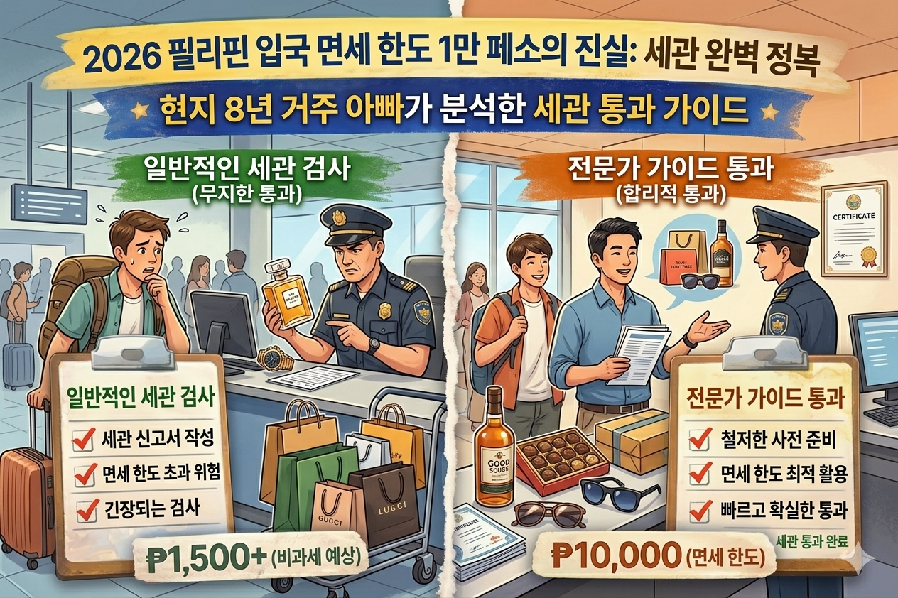 안녕하세요! 필리핀 마닐라 타기그(Taguig)에서 어느덧 8년째 거주하며 두 아이를 키우고 있는 현지 아빠 Giwonfaith입니다. 2018년 처음 필리핀에 발을 내디뎠을 때의 그 설렘과 긴장감을 저는 아직도 생생하게 기억합니다. 특히 '악명 높은 필리핀 세관'에 대한 소문 때문에 면세점에서 산 작은 가방 하나조차 가슴 졸이며 들고 들어왔던 기억이 나네요.