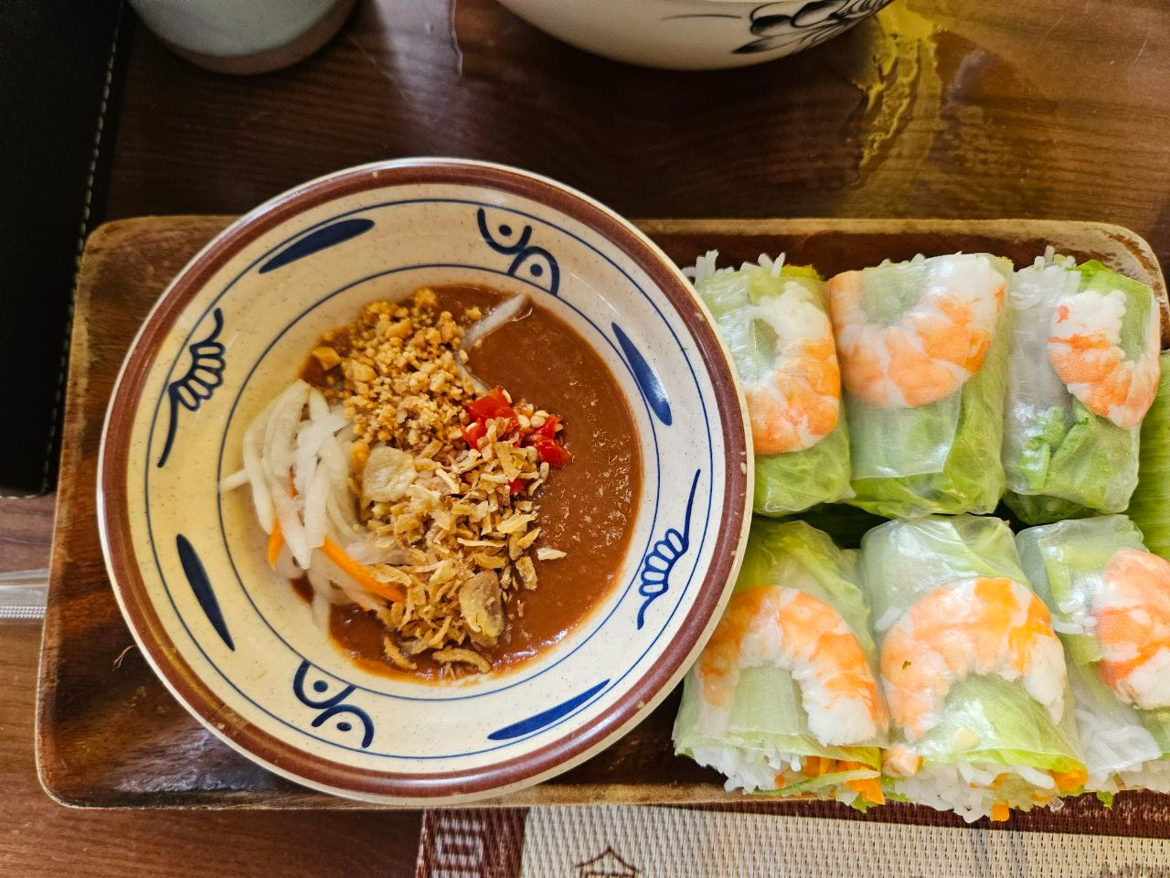야채의 아삭함이 살아 있고, 라이스페이퍼도 과하게 쫀득하지 않아 먹기 편했다. 피넛 소스에 찍어 먹으면 담백하면서도 고소한 맛이 좋다.